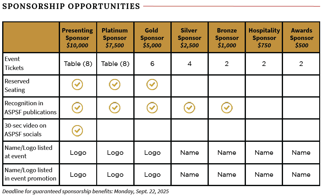Download the sponsorship form here for more information. Got a question? Contact Development Officer Leighia Hammond at lhammond@aspsf.org or 501.255.0636.